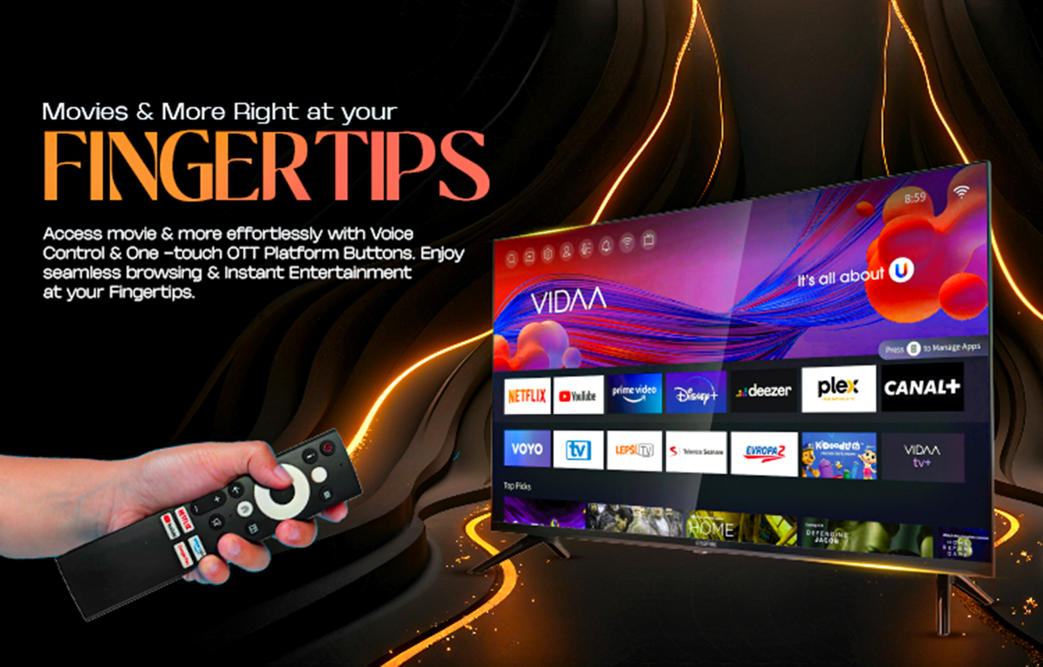 Our TVs come with features like Ultra HD resolution, Smart TV,high quality sound,Frameless screen,capabilities, HDR support, multiple HDMI and USB ports, built-in Wi-Fi, Voice control remote, and more.